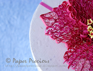 I have tried to get some shading effect by using multiple shades of pink in the beehives. The MOST tough part of making this was gluing the petals at an angle...each petal is glued over the previous petal and under the next petal...phew!